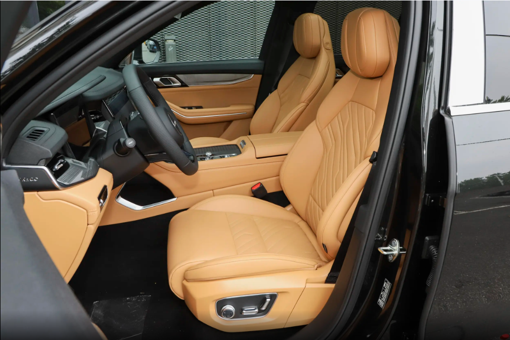 座椅方面,领克09的座椅用的是NAPPA真皮,做工特别细,缝线均匀,拼接的地方处理得很好,基本看不到瑕疵。摸着手感细腻,透气性也好,夏天不烫屁股,冬天也不冰。前排主副驾座椅功能特别多,不光有腰撑、腿托,还有加热、通风和按摩,按摩有三种模式可选,开长途车的时候,开着按摩,腰就不那么酸了,舒服多了。而且座椅设计特别人性化,后排有俩 Type-C 接口,孩子的平板和老人的保温杯能一起充电,再也不用担心出门在外电子设备没电了。中控台下面的储物格里,还专门留了放纸巾和消毒喷雾的地方,车内空间利用得特别好,这些小细节太贴心了。